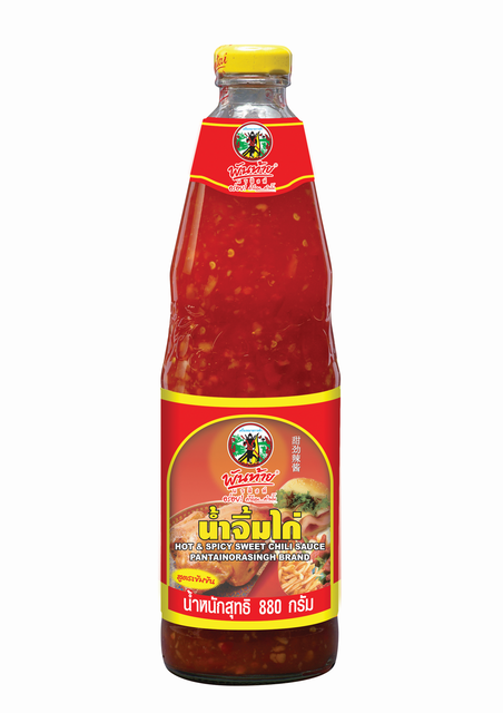 If you love the spiciness and crave a heat-like experience in your dish, Pantainorasingh (or Pantai for short) is another Thai sweet chili sauce brand that you should add to your cart right away. Pantai comes in a clear bottle, and you can notice from the inside that the sauce is perfectly blended with chili flakes; giving the altogether hot sensation that can be served with many dishes such as deep-fried fish with Nam Chim Kai.